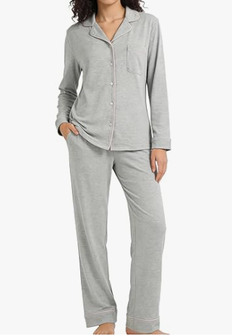 Lightweight, comfortable pajama set with a button-up top for easy access.